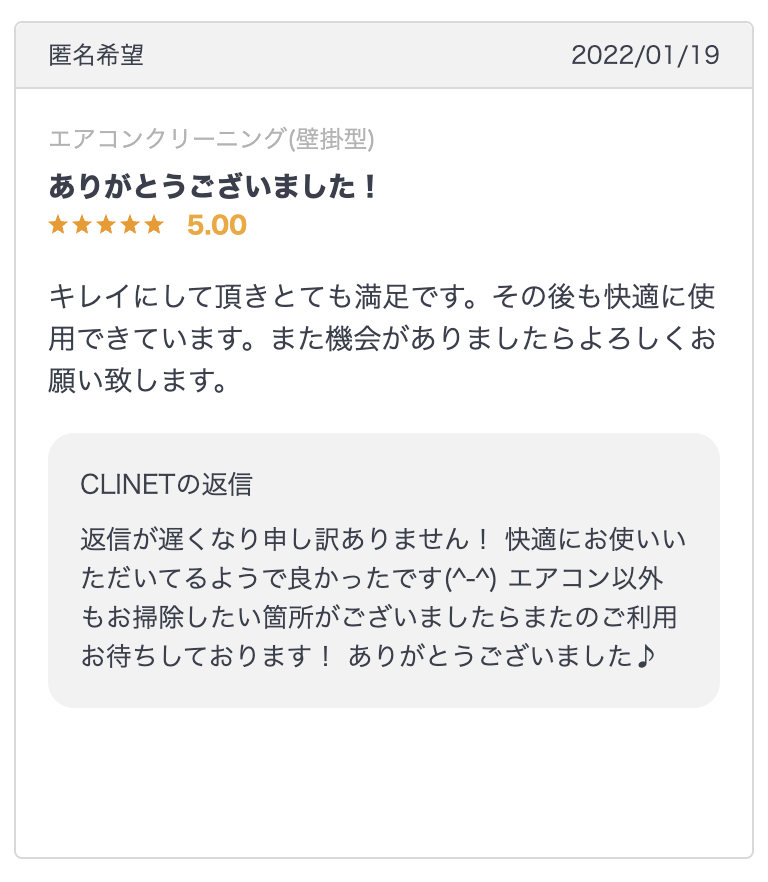 各場所の汚れや使用頻度に応じて、エアコンは年に1~2回、水回り(お風呂・洗面台・キッチン・トイレ)は半年に1回程度のクリーニングをおすすめしています。