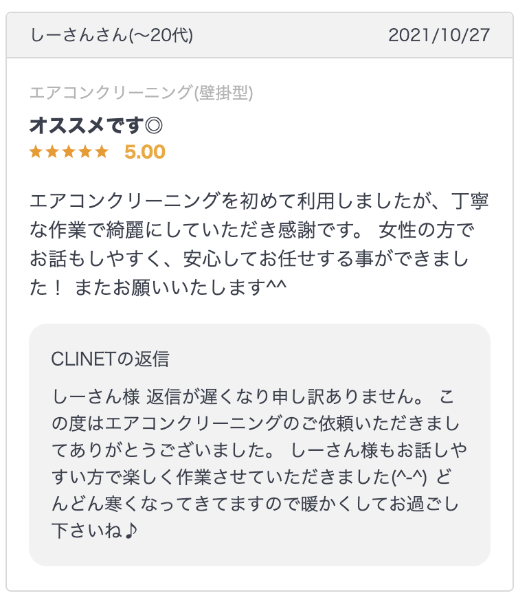 清掃後の仕上がりが美しく、お客様に高い満足感を提供しています。